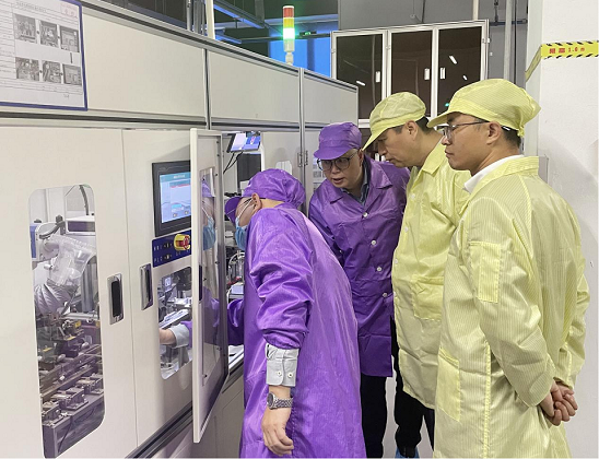 會後(hòu),盧總一行在總經(jīng)理楊曉鋒的陪同下參觀了公司的實驗室、SMT生産線、模塊裝配線、LED封測線等,并對(duì)關鍵制造工藝、檢測手段及自行設計的自動化生産專機情況等進(jìn)行了詳細詢問。