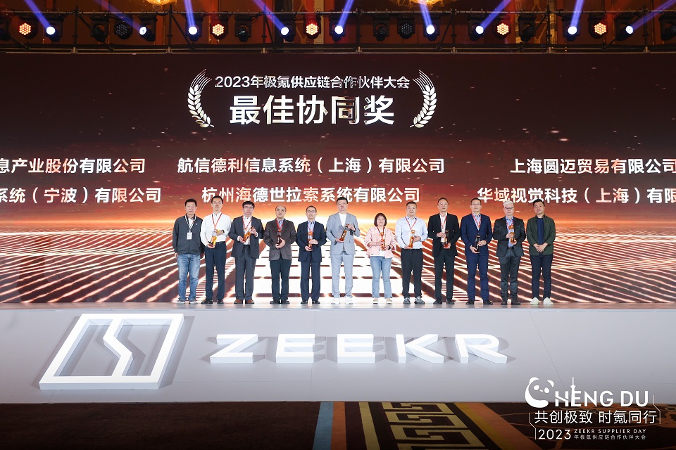 427日,極氪汽車在成(chéng)都(dōu)舉辦主題爲“共創極緻 時氪同行”2023年極氪供應商合作夥伴大會,公司榮獲2023年度最佳協同獎,總經(jīng)理楊曉鋒上台領獎。