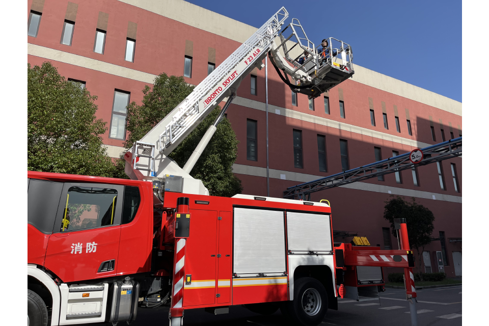 本次消防演練分爲安全知識培訓、消防器材應用、雲梯救援、消防站器材使用培訓等環節。